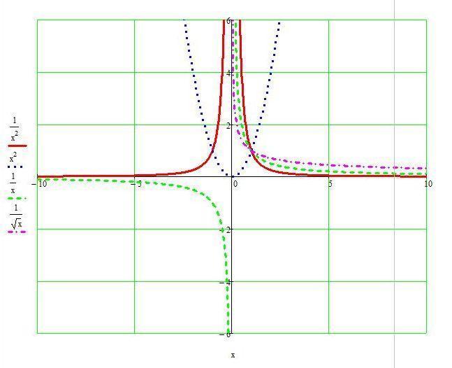 покажите графики обратной квадратичной зависимости/прямой квадратичной зависимости/обратной зависимости/обратной подкоренной зависимости