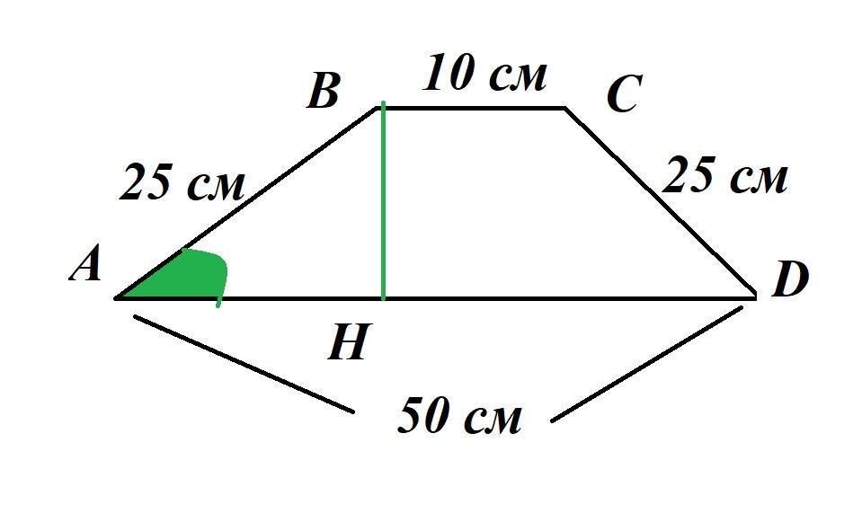 Проведем высоту трапеции BH. Получили прямоугольный треугольник ABH, у которого