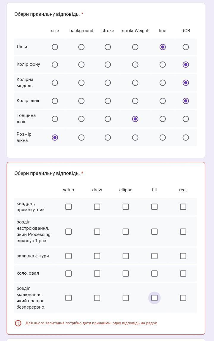2) роздiл настроювання, який Processing виконуе 1 раз: setup