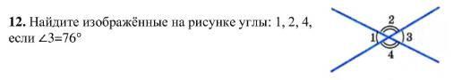 Ответ: угол 1 = 76 градусов, угол 2 = 104 градусов, угол 3 = 76 градусов, угол 4 = 104 градусов.