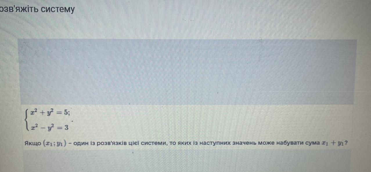 Якщо (1:31) - один з розв'язкiв цієї системи, то яких /з наступних значень може набувати сума x1+y2