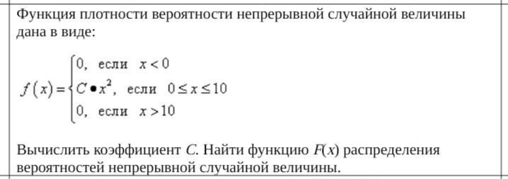 ∫₀¹⁰f(x)dx = Cx³/3║₀¹⁰ = C·1000/3 = 1