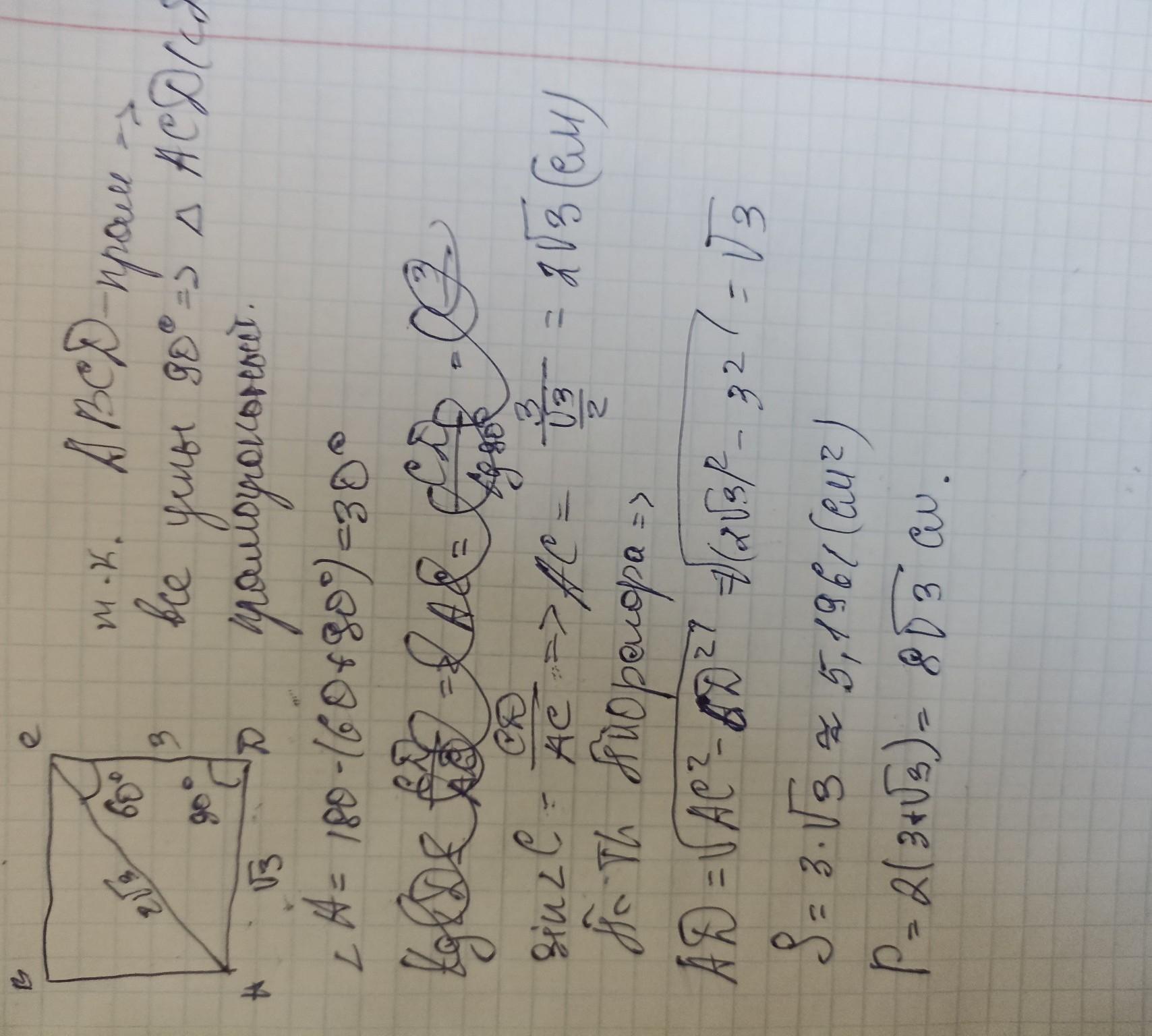 Р=2(а+b)=2(3+3√3). Можно оставить так, а можно вынести за скобки тройку: 2(3+3√3)=2×3(1+√3)=6(1+√3).