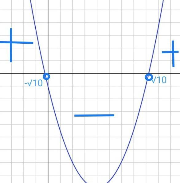 ответ: х∈(-∞;-√10)⋃(√10;+∞)