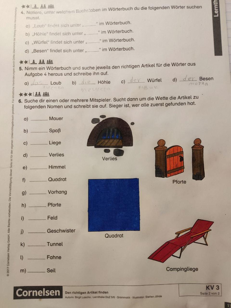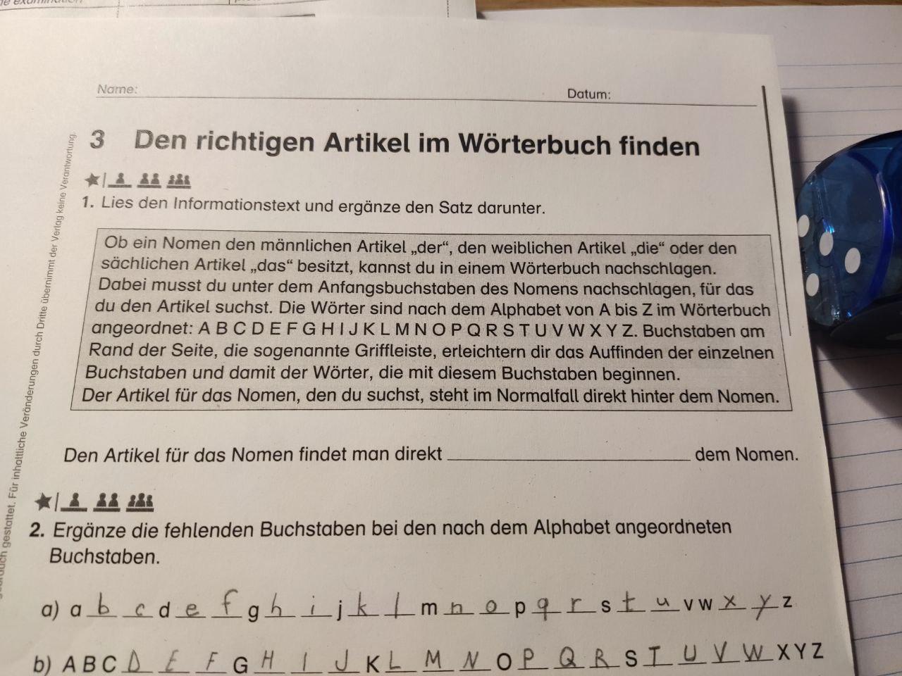 1. Den Artikel für das Nomen findet man direkt hinter dem Nomen.