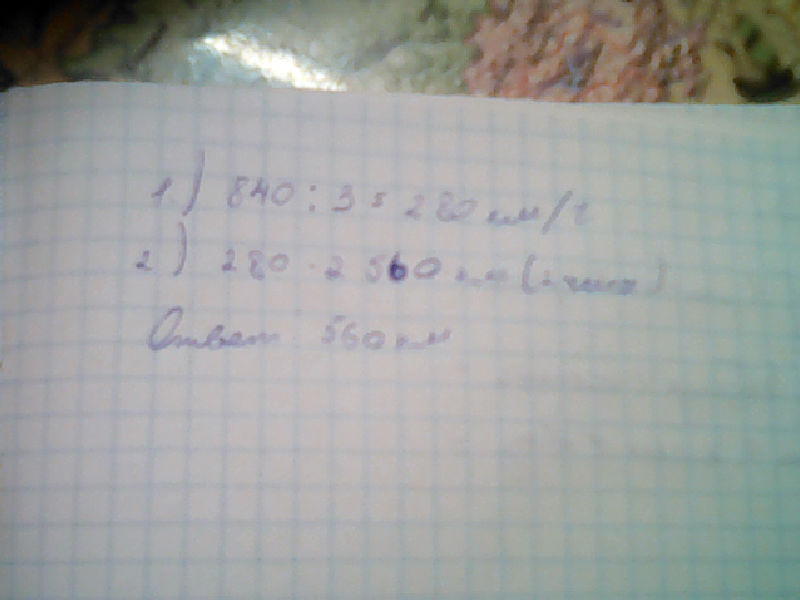 Самолёт за 2 часа про летел 840км.Сколько км он пролетит за 3 часа?