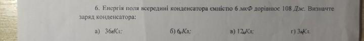 q = √(2*C*W) = √(2*108*6*10^-6) == 36 мили Кулон