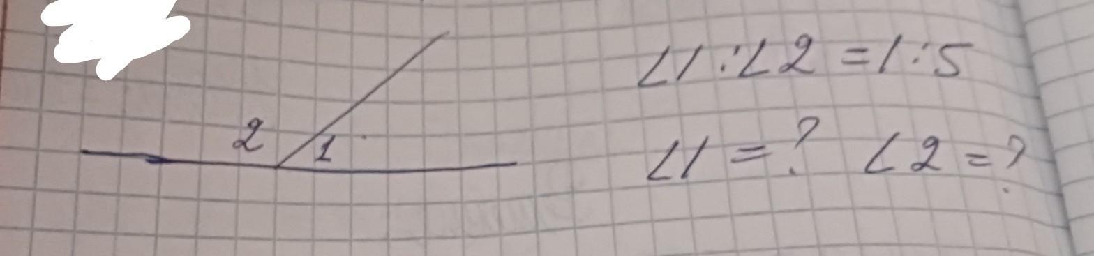 Кос смотри. Весь угол равен 180*. 1 и 5 это части из которых состоят два смежных друг другу угла. 1+5=6 -это общее количество частей из которых состоит угол. 180/6=30* - одна часть