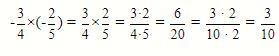 b) -3/4 * (-2/5) = (3*2)/(4*5) = 6/20 = 3/10 = 0.3.