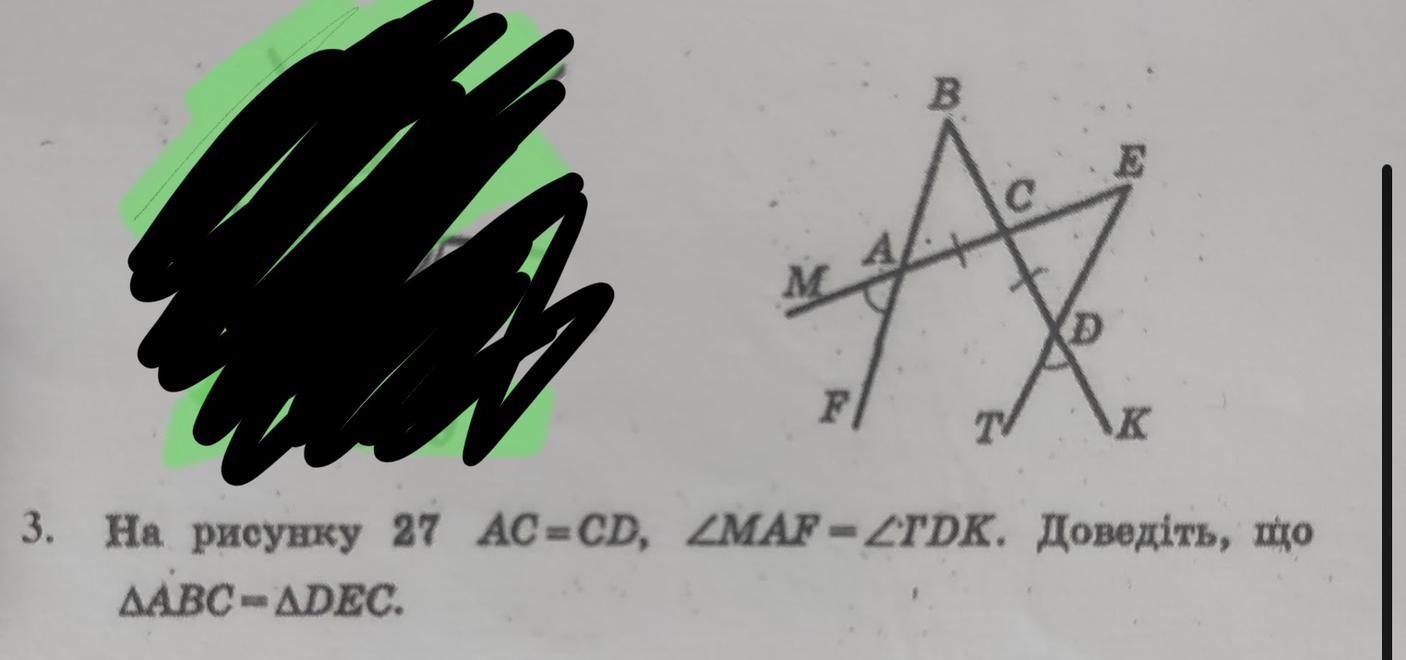 Тогда ΔABC=ΔDEC по стороне и двум прилежащим к ней углам(второй признак, если не ошибаюсь)