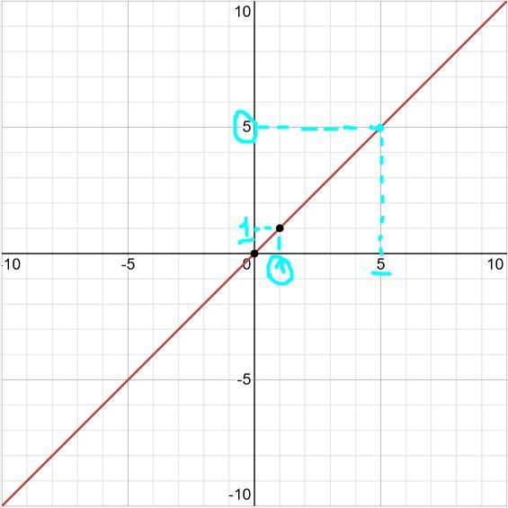 В той же самой линейной функции при х = 1 у = 1.