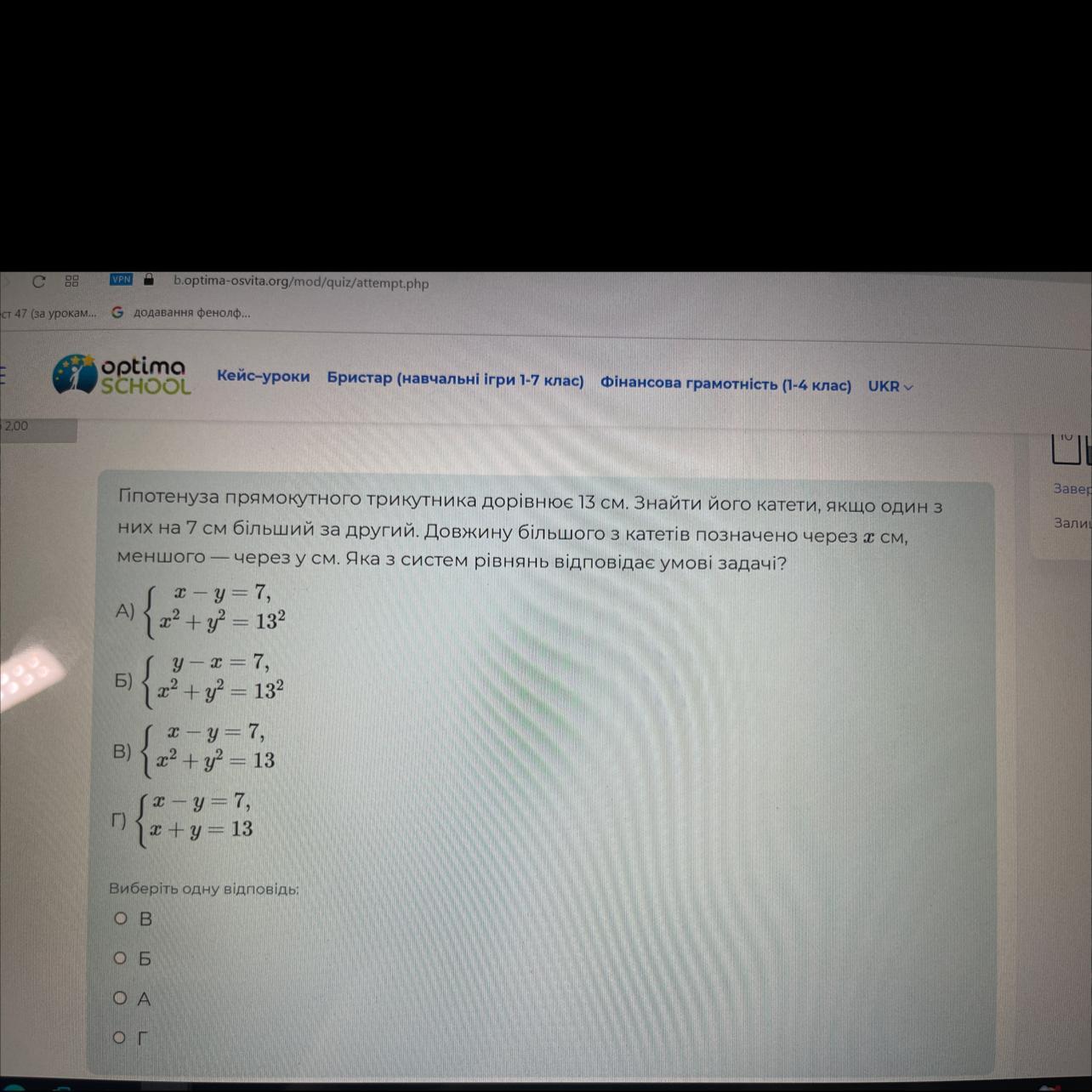 меншого - через у см. Яка з систем рiвнянь відповідає умові задачі?