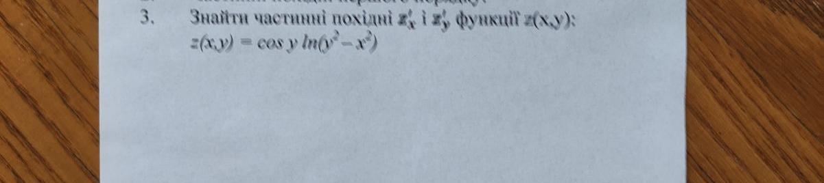 похідна по х : z'(x) = cosy * 1/( y² - x² ) * ( y² - x² )' = cosy/( y² - x² )( 0 -