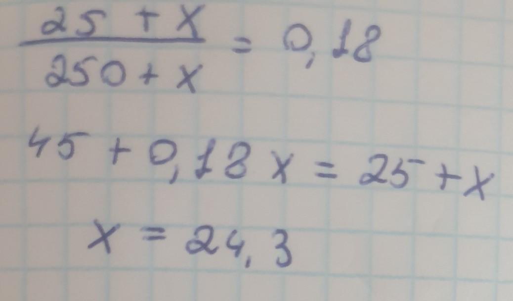 После того как добавили X соли, то и масса раствора и масса вещества увеличатся на X, и это составляет 18% ( 0,18 ).