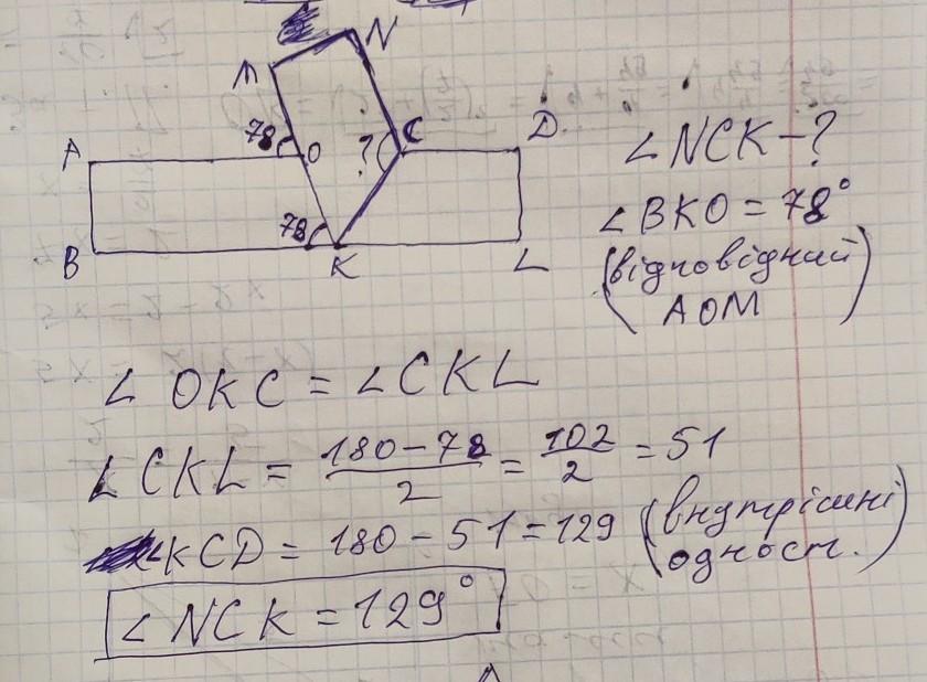 Полоску бумаги согнули так, как это показано на рисунке. Чему равна градусная мера угла, обозначенного знаком вопроса?