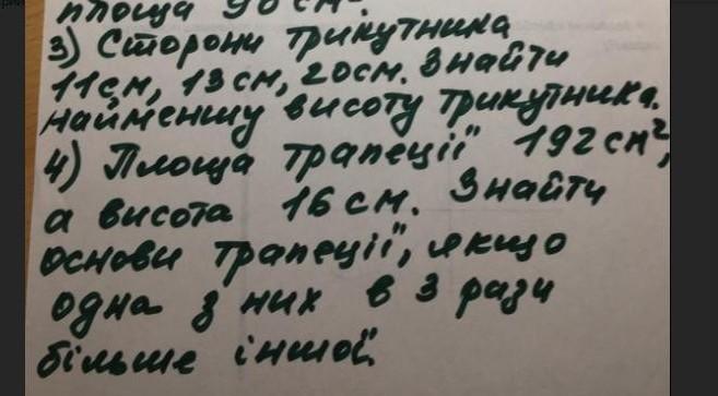 4 ) У трапеції АВСD BC║AD ; S тр = 192 см²; h = BD = 16 cм ;