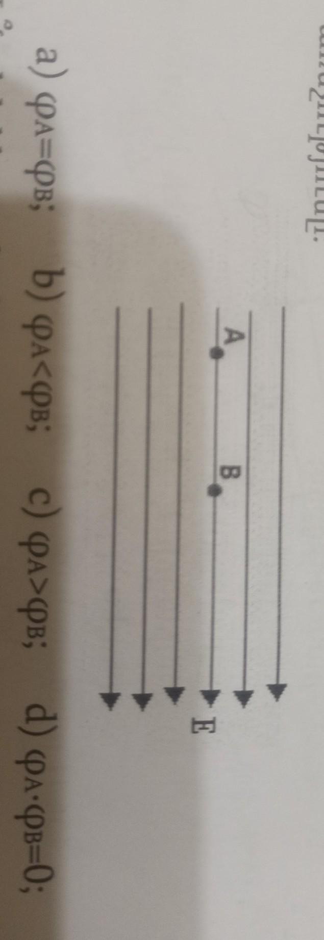 Какая формула выражает правильное соотношение потенциалов в точках А и В однородного электростатического поля?