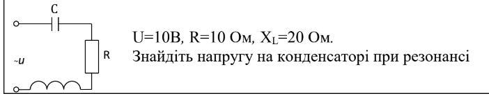 Напруга на конденсаторі при резонансі визначається за формулою: