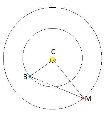 Отсюда Sз-м = √(Sз² + Sм²) = √(1² + 1,52²) = √3,3104 = 1,81945 а.е.