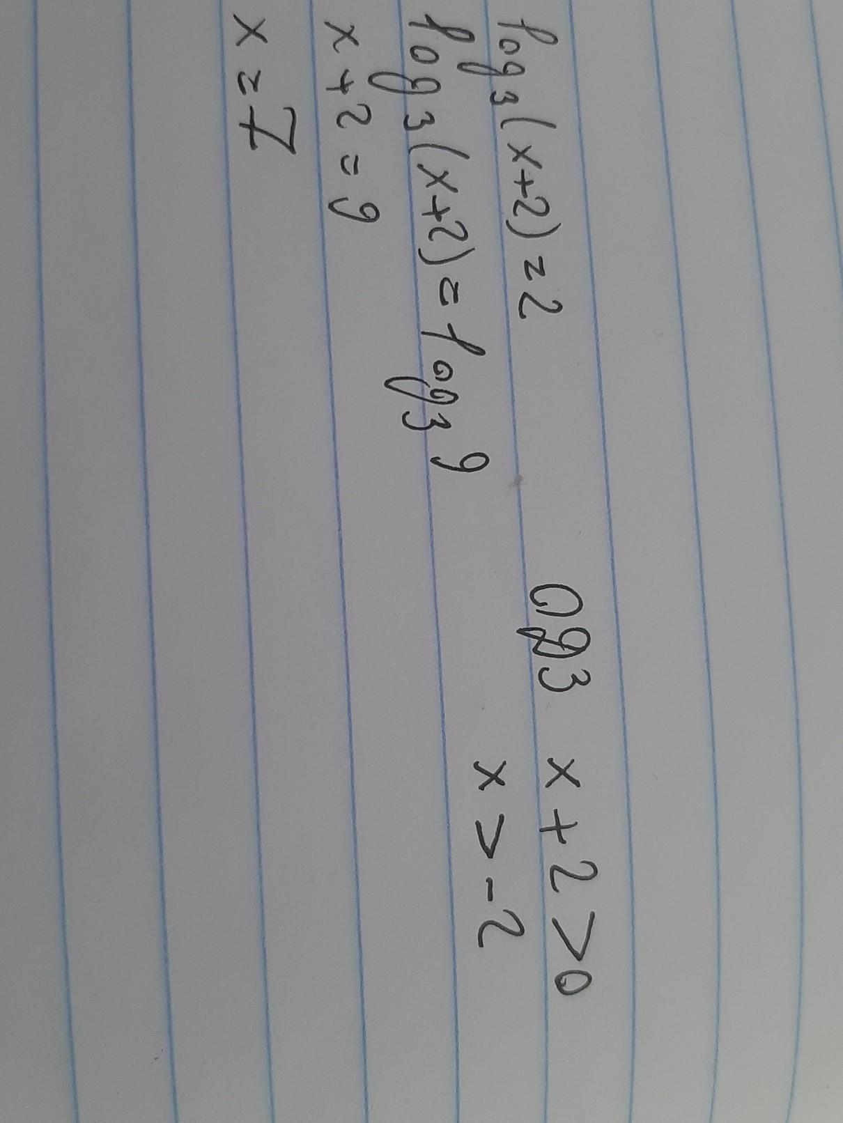 помогите решить логарифмическое уравнение log3(x+2)=2. через одз