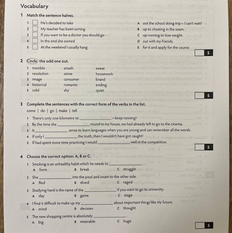 5 If I had spent more time practicing, I would _have done_ well in the competition.