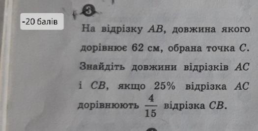Нехай АС = х см , тоді СВ = ( 62 - х ) см .