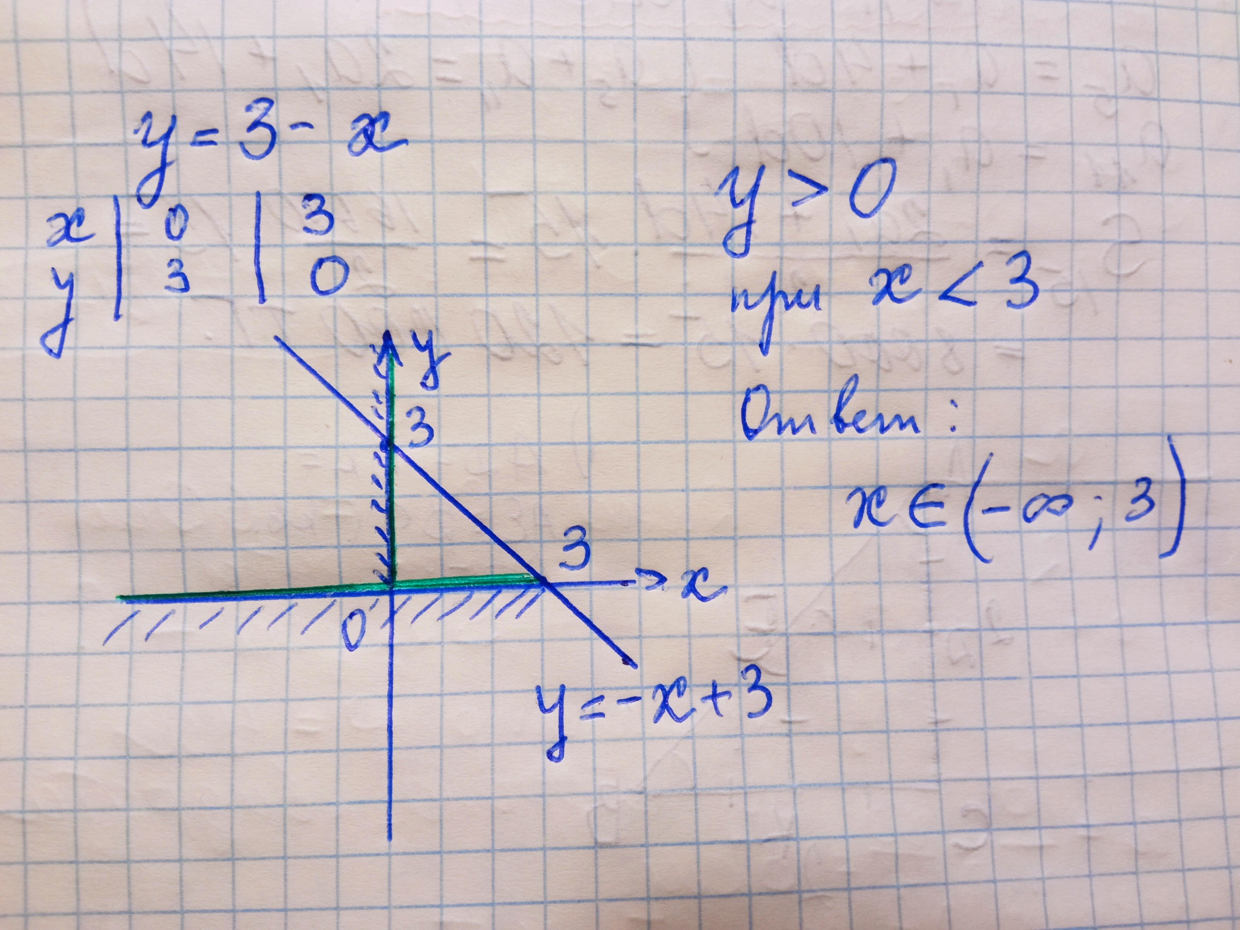 Побудуйте графік функції y = 3 - x Користуючись побудованим графіком, установіть при яких значеннях аргументу функція набуває додатних значень.