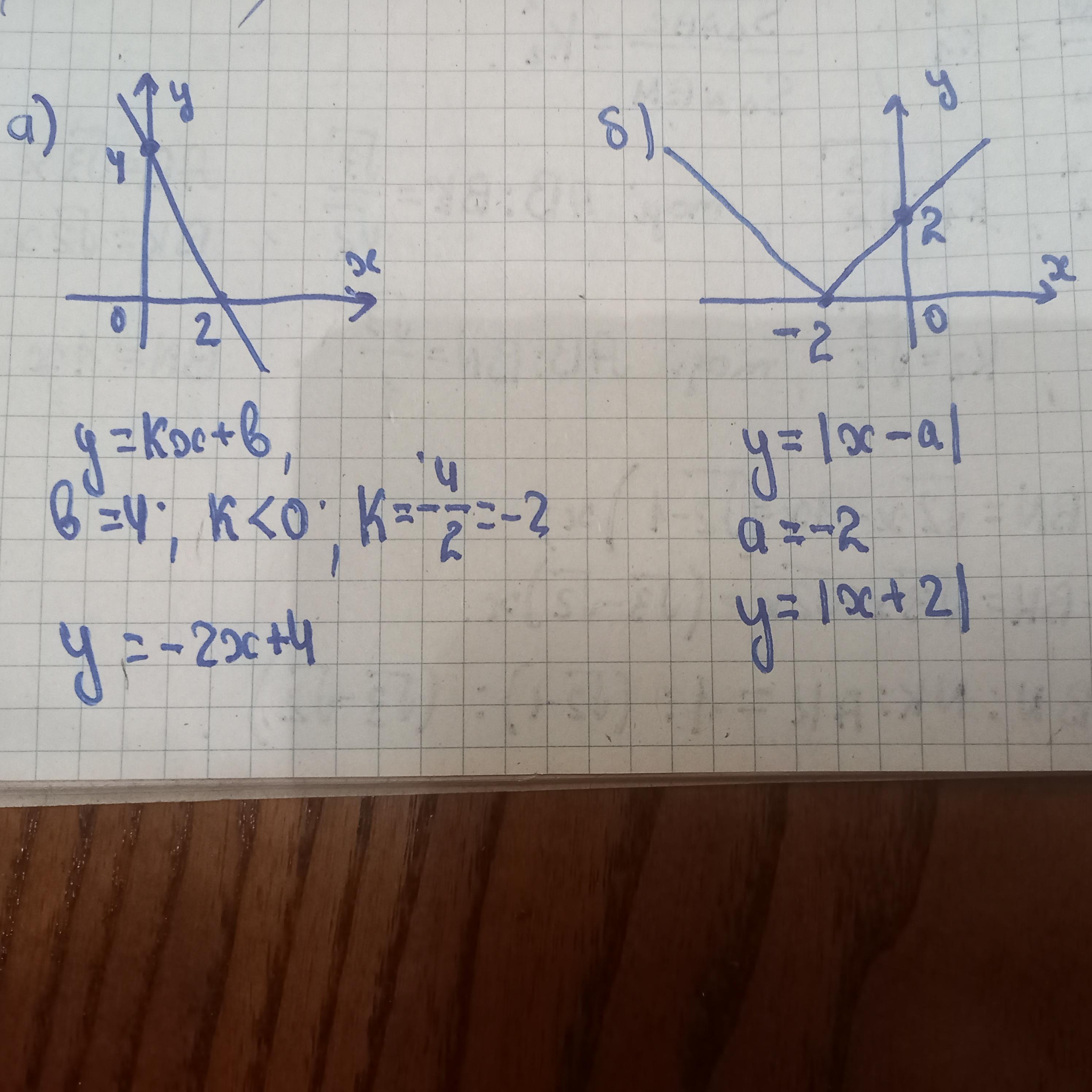 1) y=-2x+4; 2) y=|x+2|