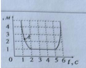Частица движется вдоль оси Ох. На рисунке показан график зависимости ее координаты от времени. Вычислить нормальное ускорение частицы в точке А (ответы - 3, 2.2, 1.8, 0.5, 0)