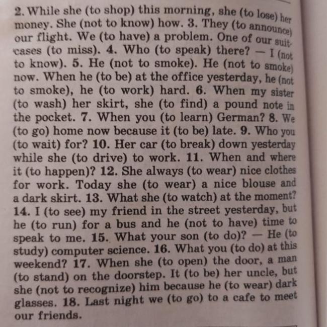 5. doesn't smoke, isn't smoking, was, didn't smoke, worked.