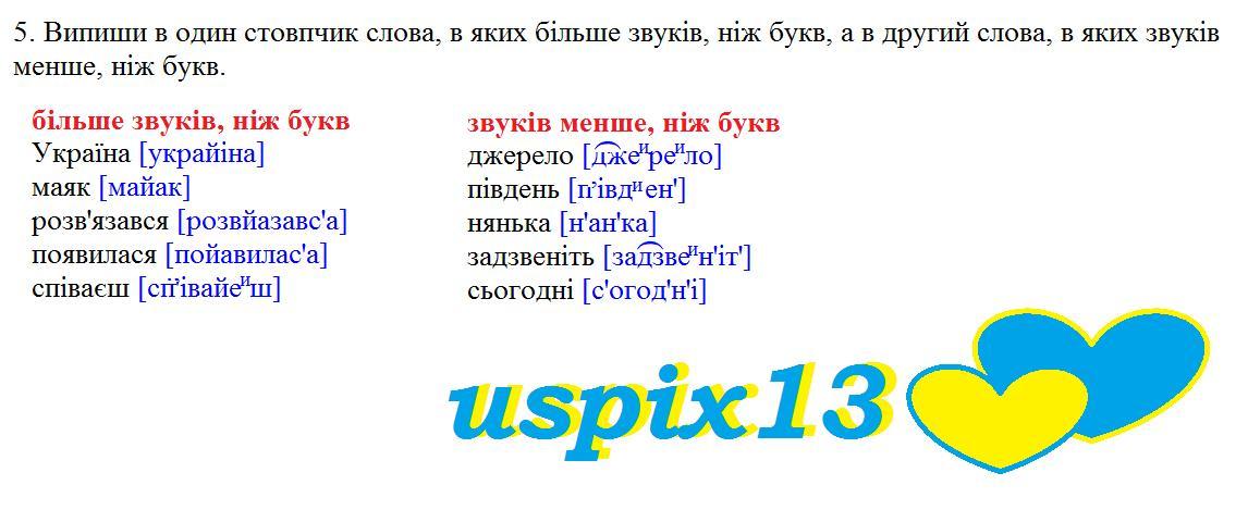 5. Випиши в один стовпчик слова, в яких більше звуків, ніж букв, а в другий слова, в яких звуків менше, ніж букв. -- Україна, джерело, південь, квіточка, маяк, нянька, любис- ток, свято, задзвеніть, розв'язався, появилася, пісня, україн- ська, співаєш, сьогодні. срочно прошу!!!!!!!???