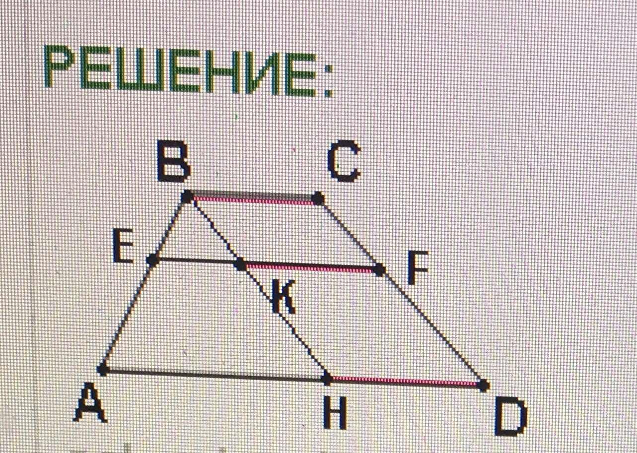 4. Прямая, параллельная основаниям трапеции ABCD, пересекает её боковые стороны AB и CD в точках E и F соответственно. Найдите длину отрезка EF, если AD = 50, BC = 30, CF:DF = 7 : 3.