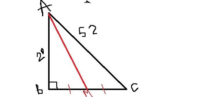 У прямокутному трикутнику АВС (кут В =90°) АС= 52 см АВ=20 см. Знайдіть медіану АМ трикутника