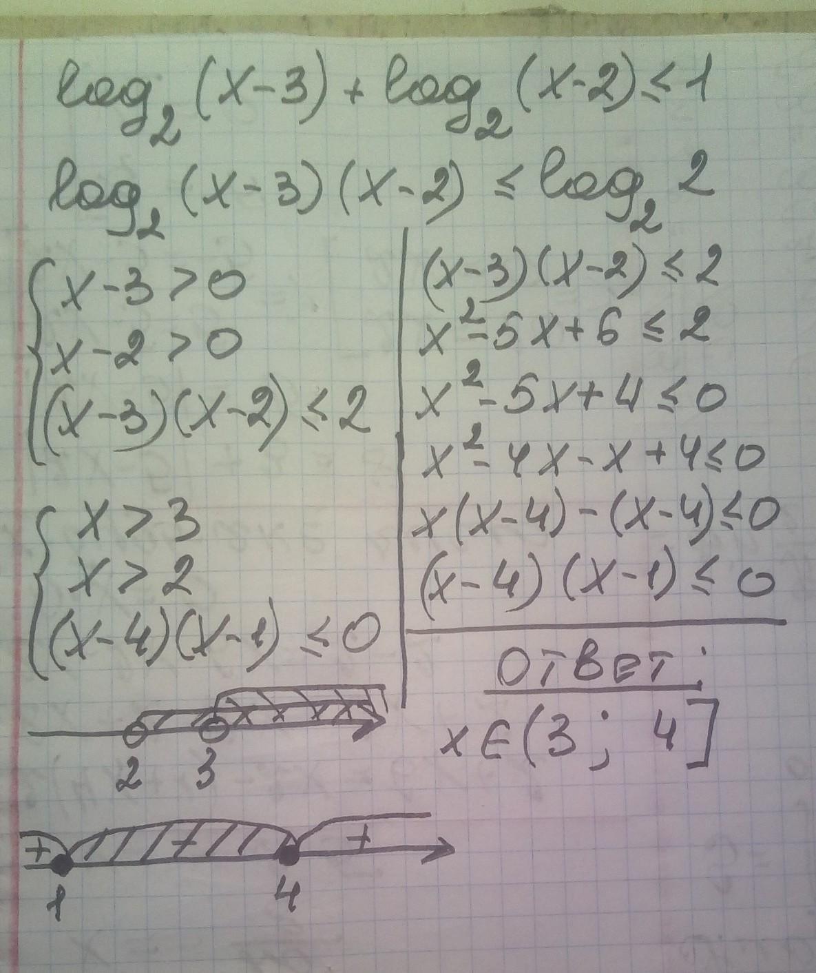 12. PemnTe HepaBeHCTBO logz(x-3)+ logz(x-2)≤1