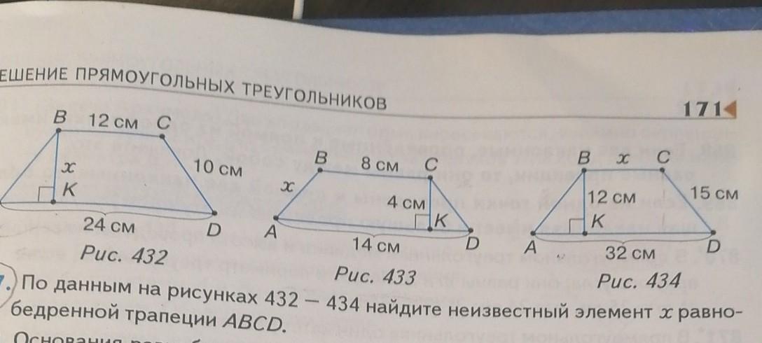 везде проводить высоту, так как это трапеция и две высоты образуют прямоугольник,а дальше по теореме Пифагора