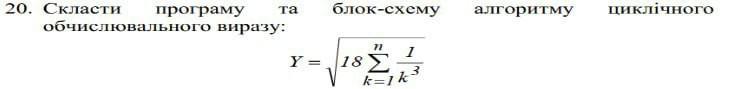 Вот код на языке С++ для вычисления значения выражения Y = sqrt(18*sum(I/k^3, k=1 to n)):