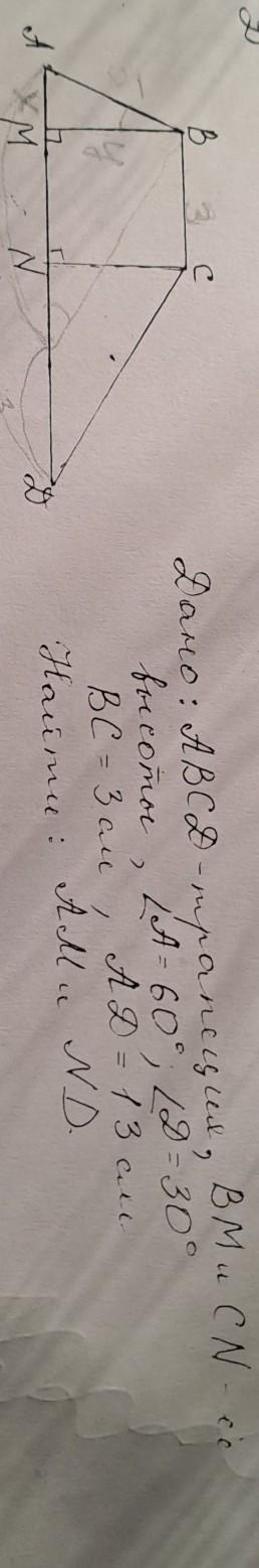 ND=AD-AM-BC=13-9-3=1см