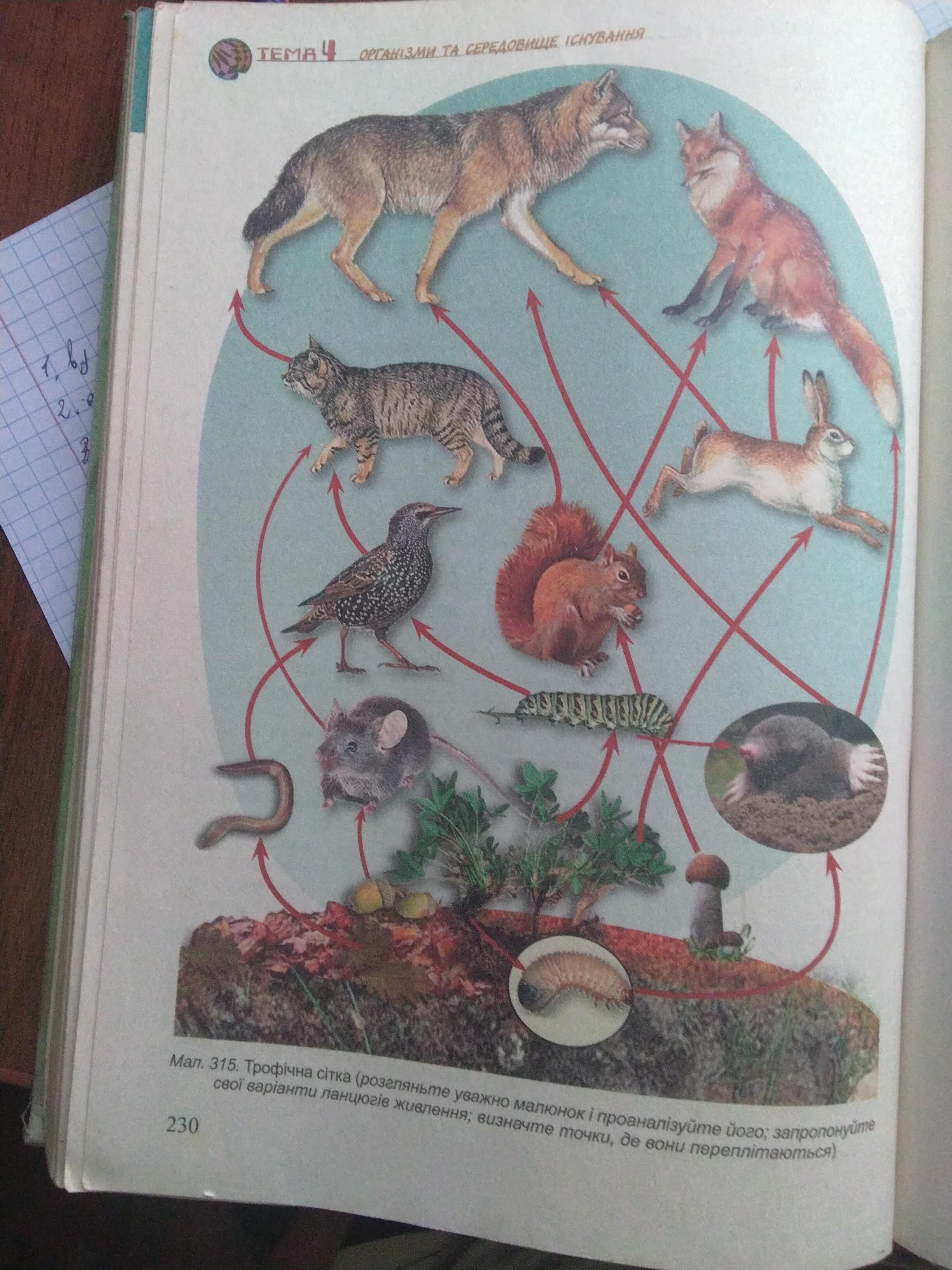 ***редуцент-гриби=продуцент-дерева=консумент першого порядку-заець=консумент другого порядку -лиса