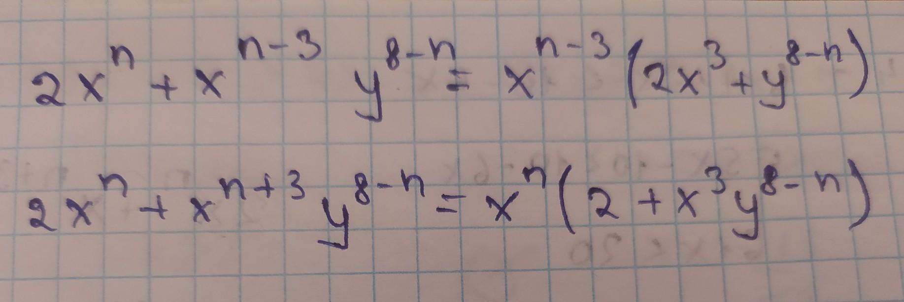 2x^n/x^(n-3) Степени вычитаются, и получаем n-(n-3)=n-n+3=3