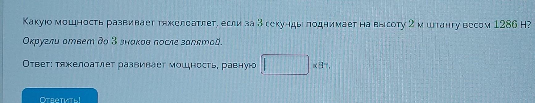 N=A/t=Ph/t=1286*10/3=4287Вт