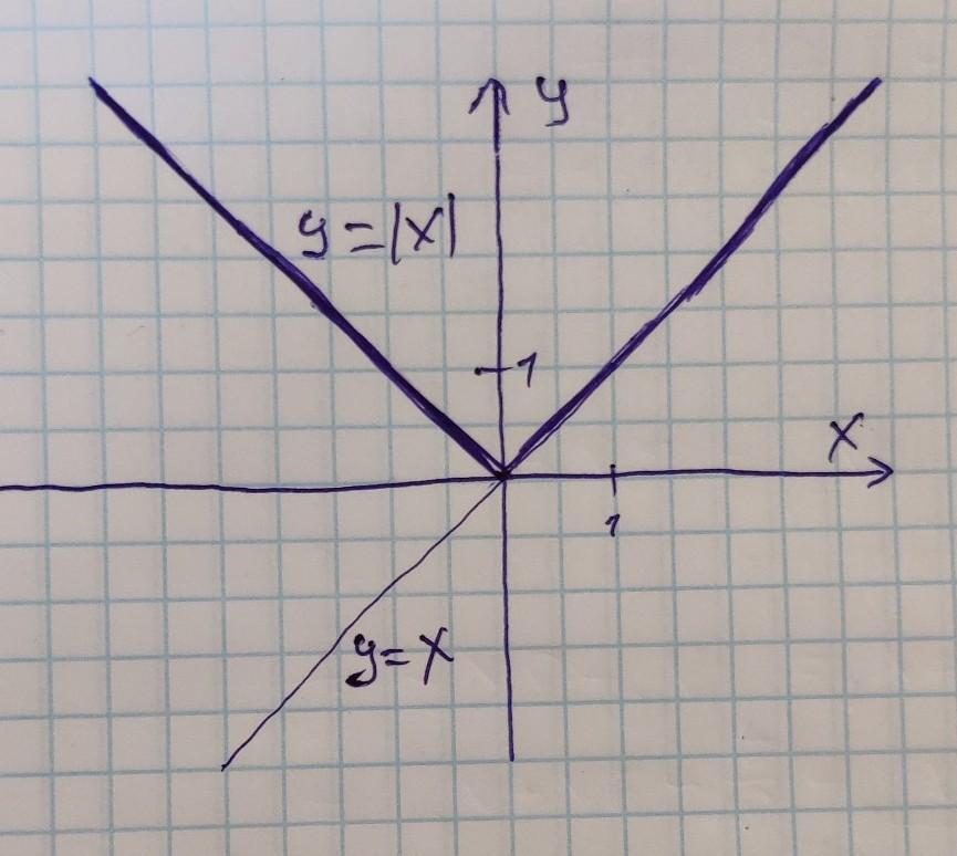 графік будується на основі графіка ф-ї у=х, відбиттям частини графіка з від'ємними значеннями "у" в верхню півплощину