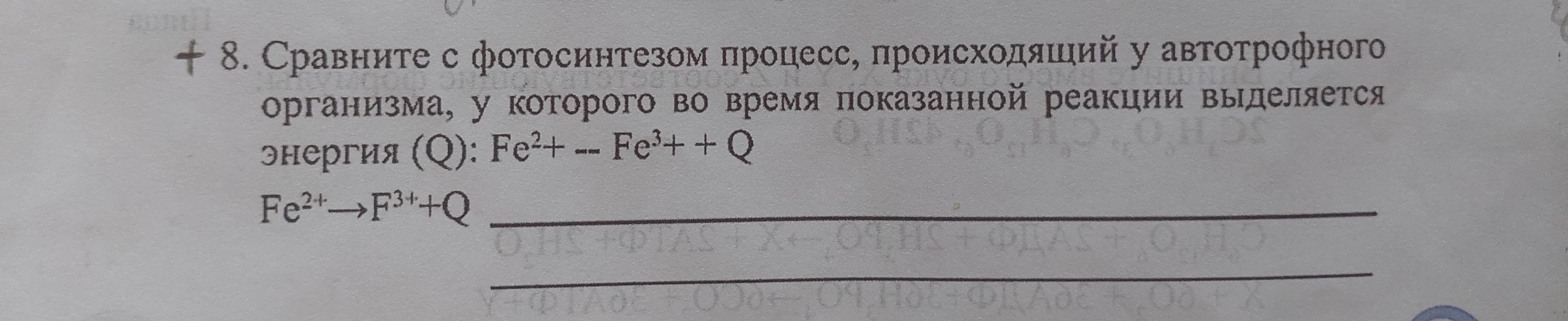 Ваш пример относится к хемосинтезу, так как в нем участвует окисление неорганического соединения (Fe²⁺) с выделением энергии (Q).
