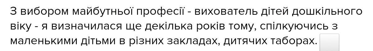 з вибором майбутньої професії, вихователь дітей дошкільного віку, я визначилася ще декілька років тому, спілкуючись з маленькими дітьми в різних закладах, дитячих таборах.