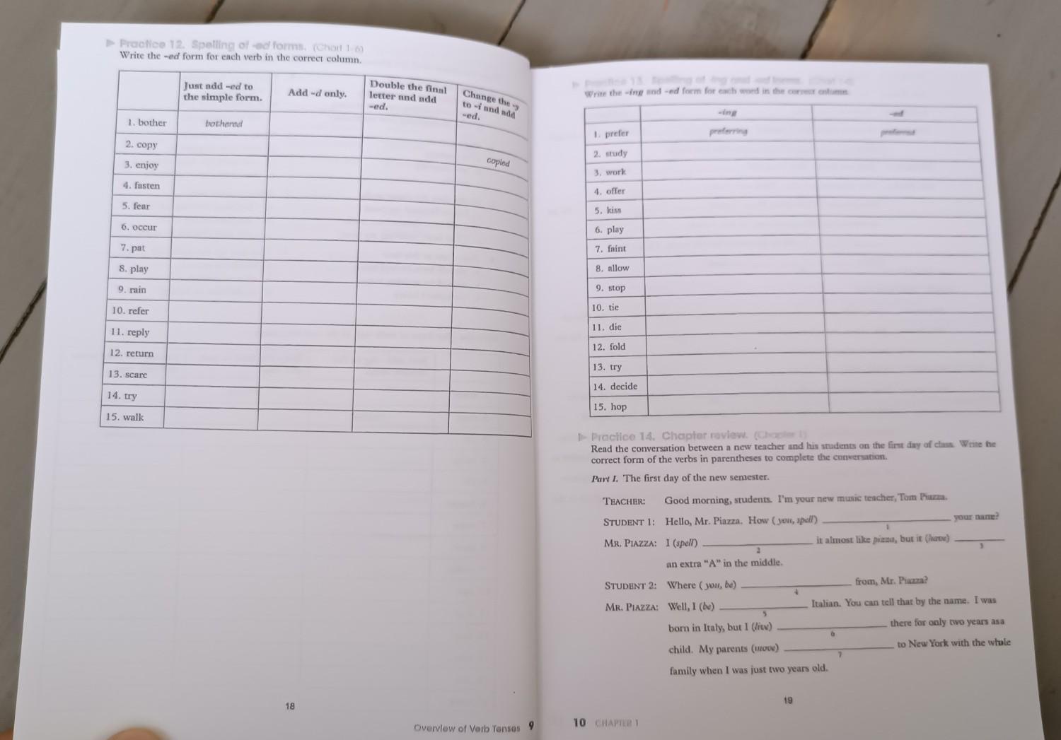 enjoyed, fastened, feared, occured, patted, played, rained, refered, replied, returned, scared, tried, walked.