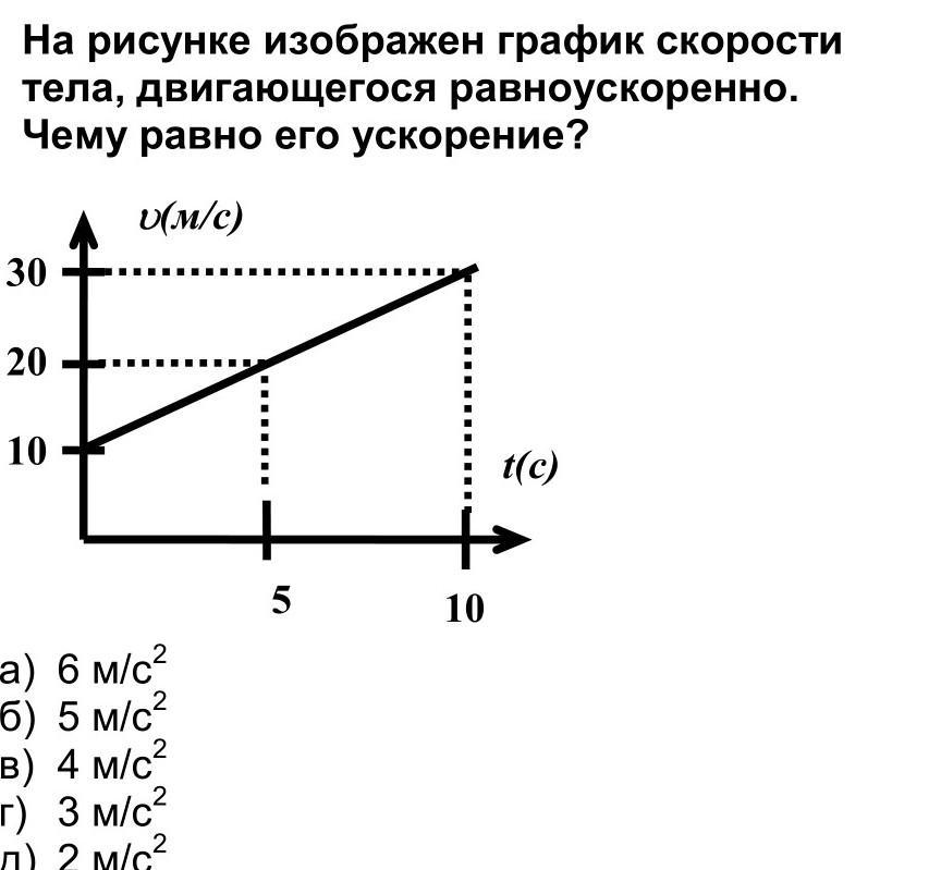 На рисунке изображён график скорости тела двигающегося равноускоренно Чему равно его ускорение ?