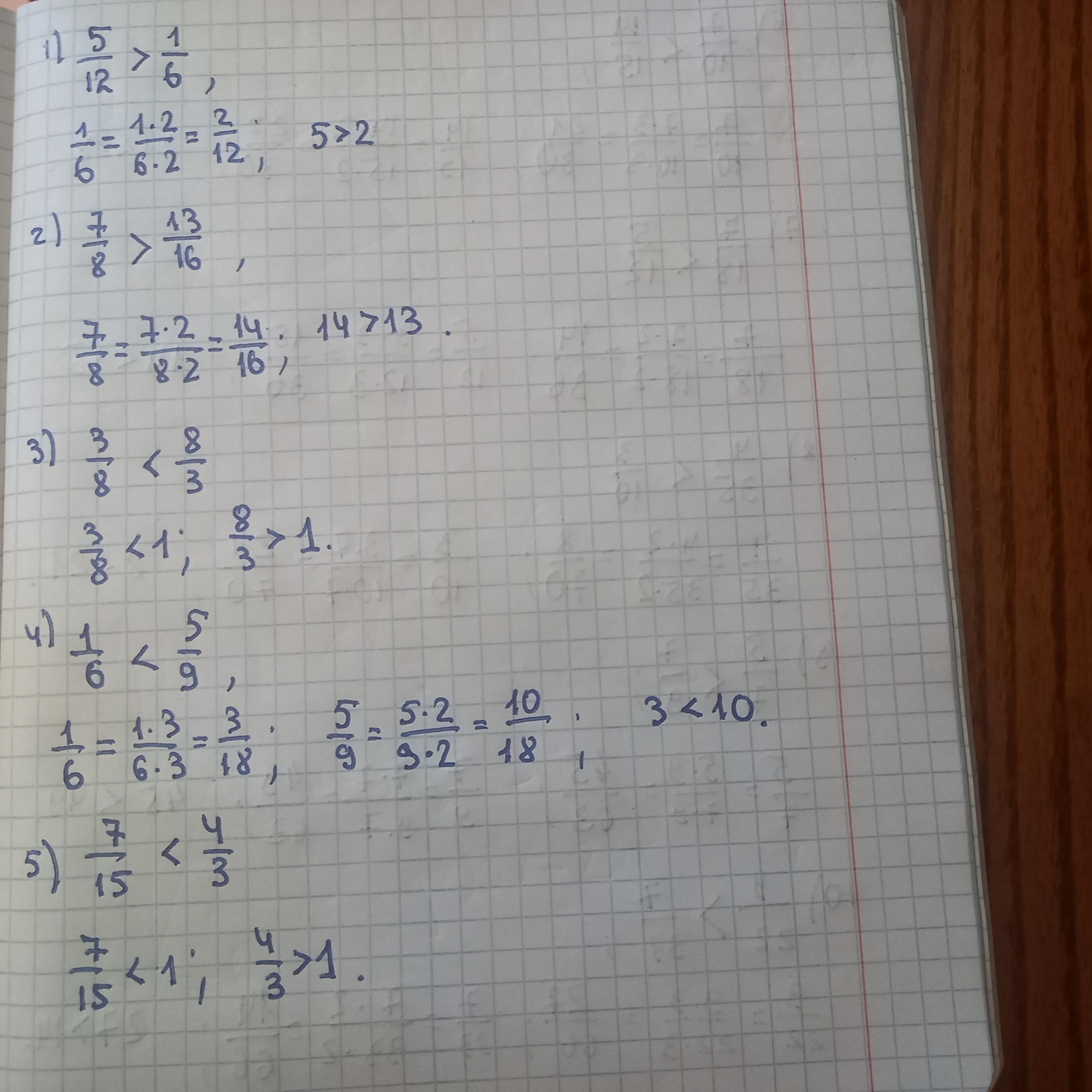 (7*2)/(8*2) и 13/16 => 14/16 и 13/16;