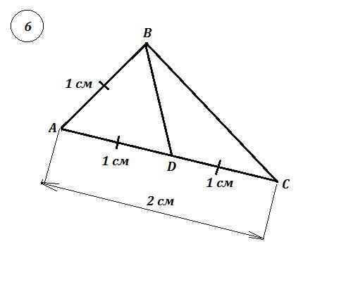 6) ΔАВС , АВ=1 см , АС=2 см , BD - медиана : AD=DC , BD=√3 см .