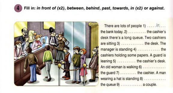 2. in front of 3. in 4. behind 5. in front of 6. past 7. towards 8. in 9. between. Если только так