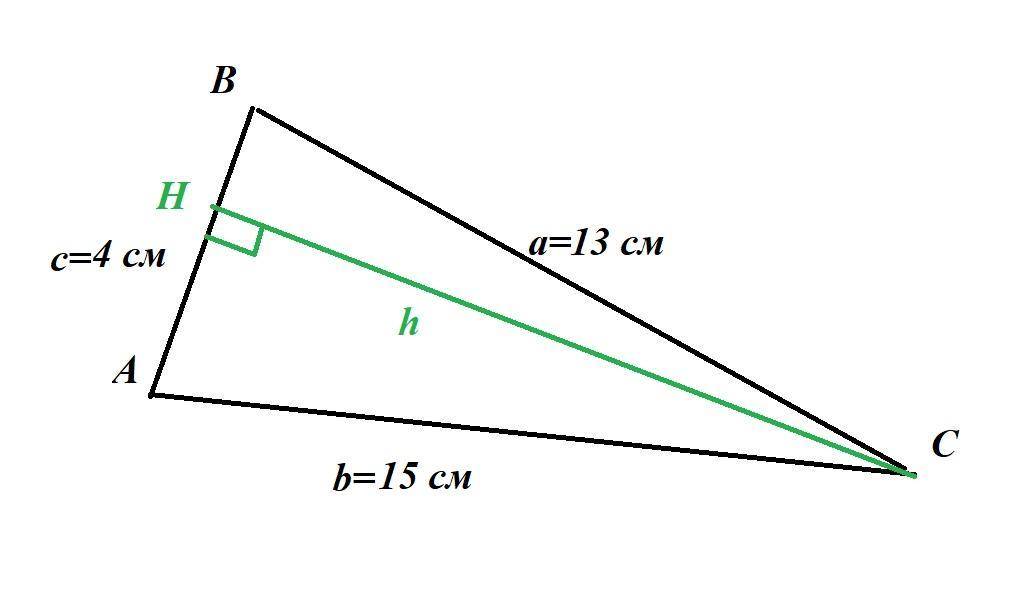 ABC - треугольник. AB=c= 4 см; BC=a= 13 см; AC=b=15 см