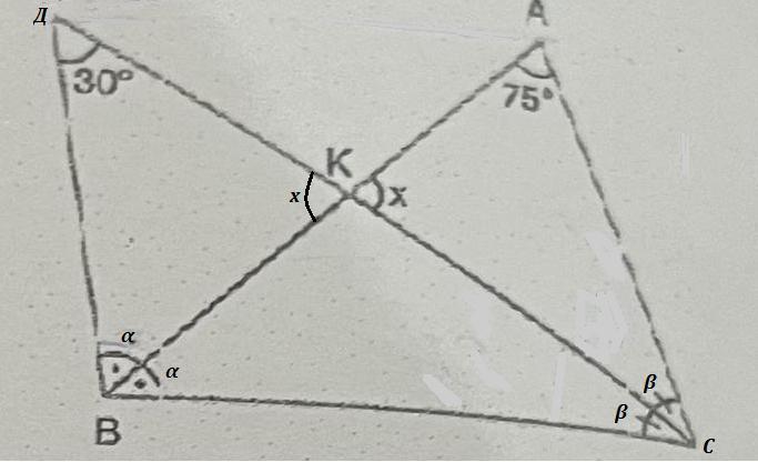 ∠АКС=х , ∠ВКД=∠АКС=х как вертикальные